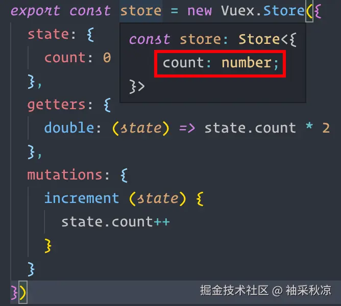 Vuex中,TypeScript的类型提示做得不是很好,在进行类型推导时,只能找到它的state。特别是写代码的过程中,代码提示就很不智能。 - 而