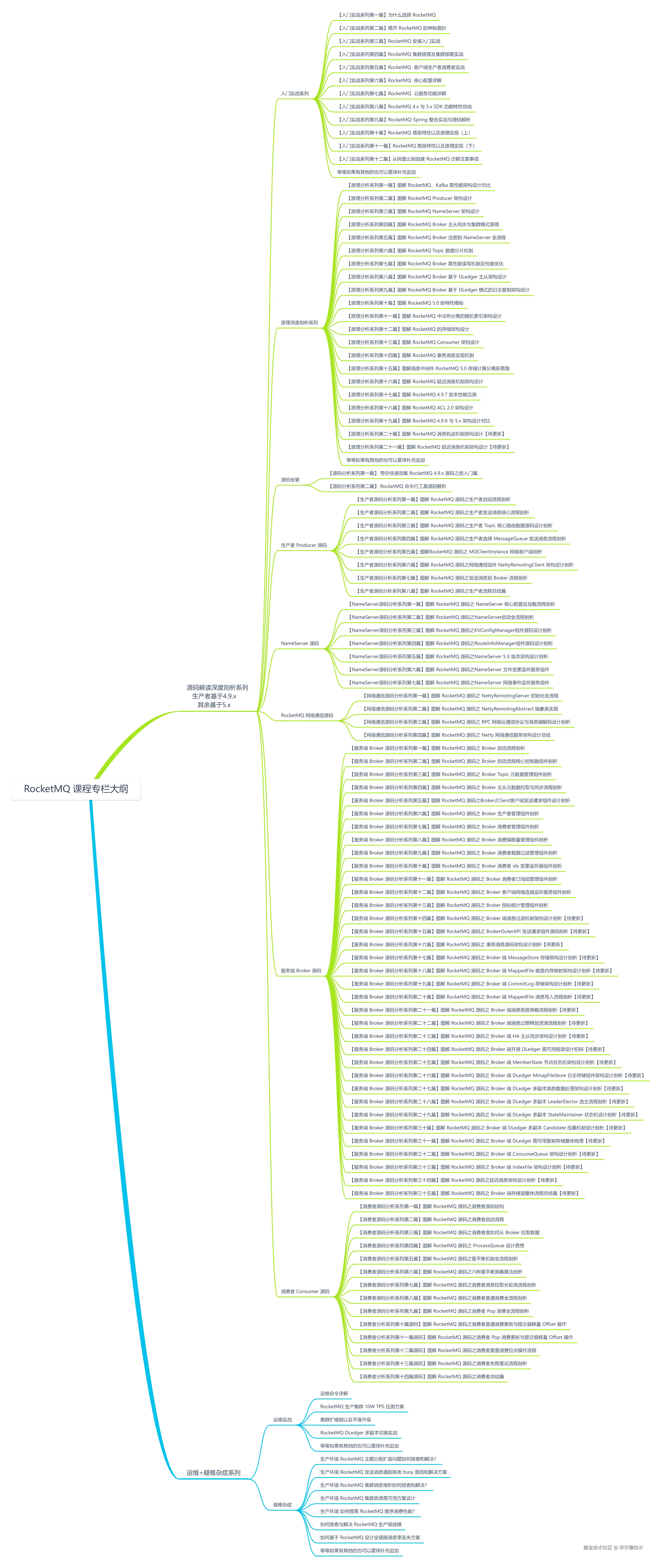 下面是 RocketMQ 的专栏大纲图: