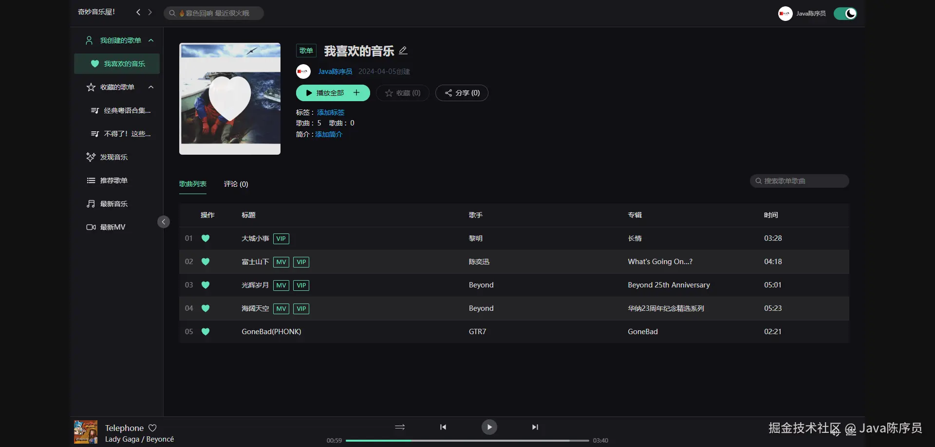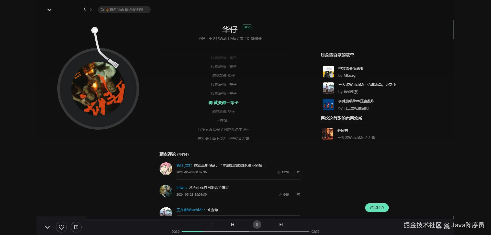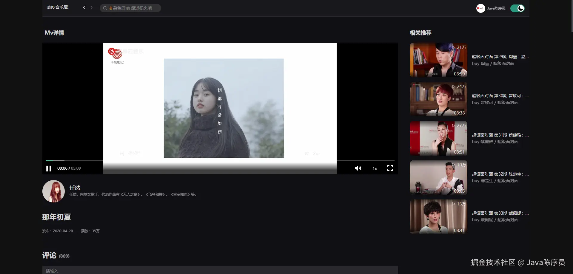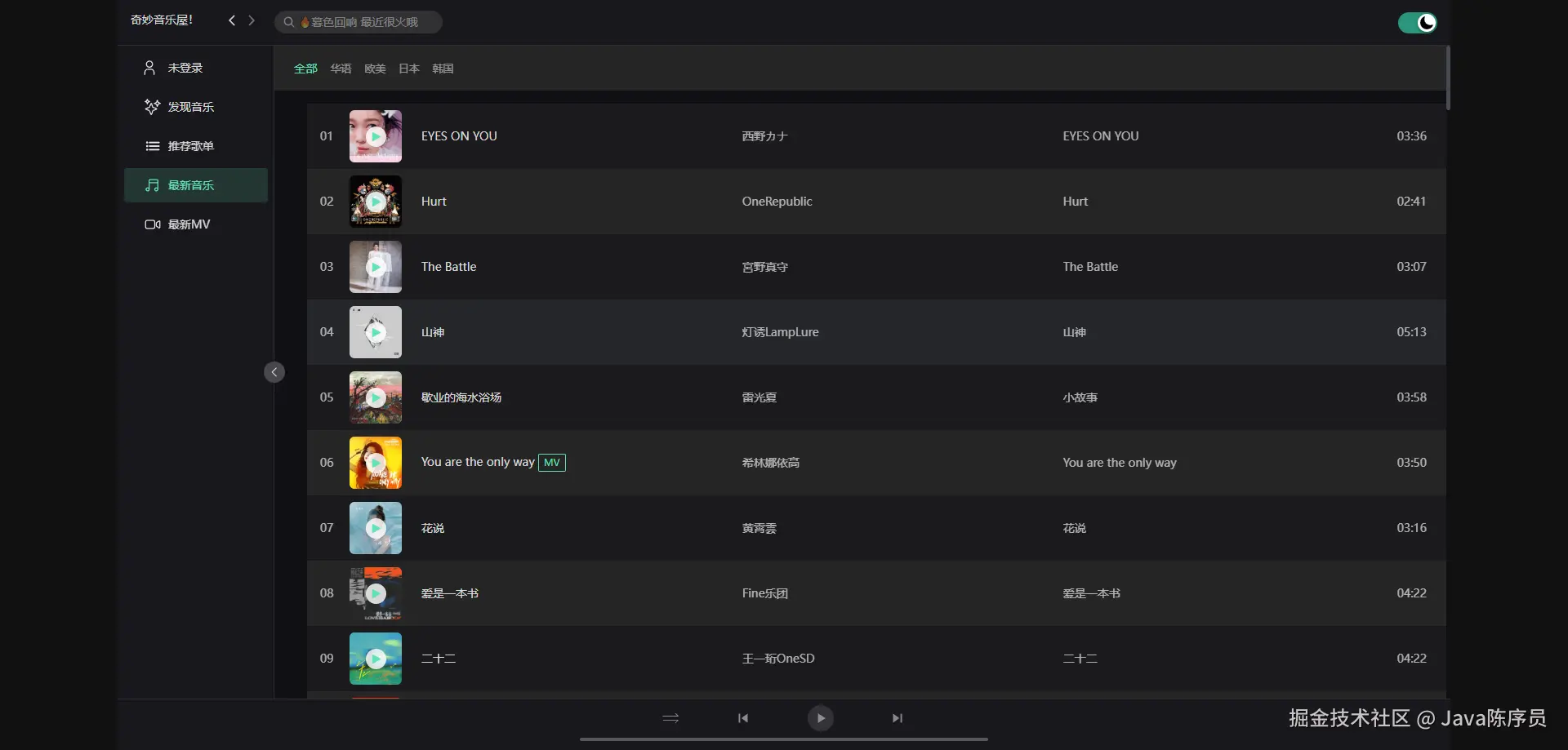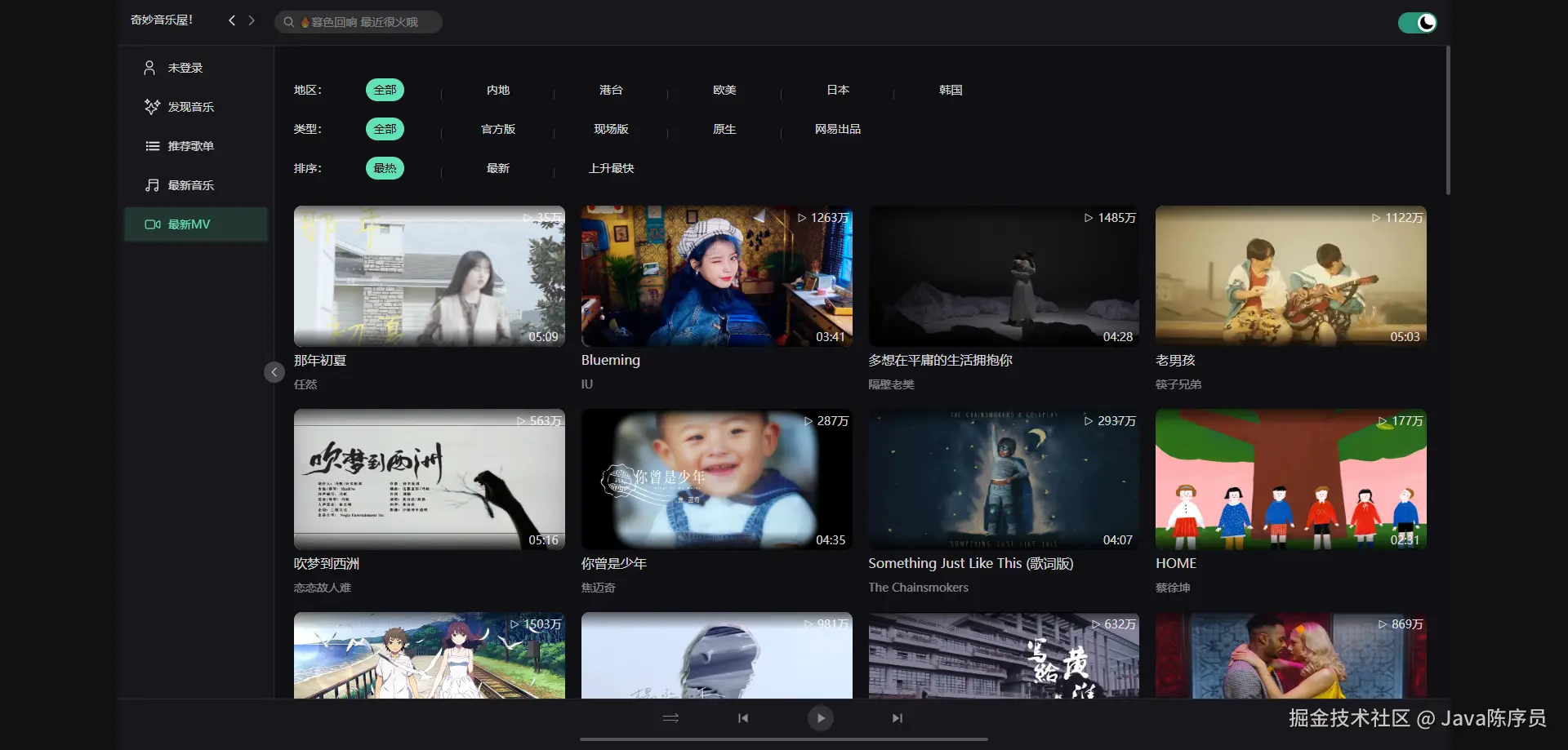 - MV 列表,支持播放 MV