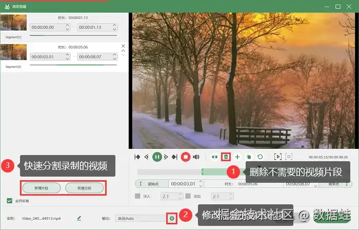 步骤3:点击 “开始录制” 按钮,根据预设参数进行屏幕录制。录制过程中可随时暂停和继续。录制完成后,点击“停止录制”按钮对视频进行编辑。
