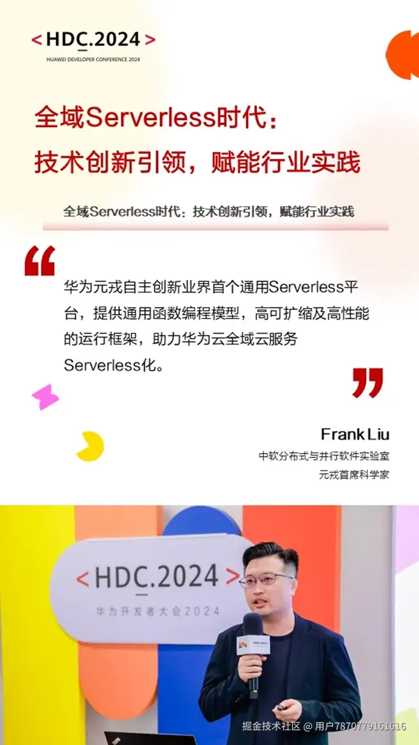日前,华为开发者大会2024,“全域Serverless时代:技术创新引领,赋能行业实践”专题论坛上,企业嘉宾和专家齐聚一堂,围绕全域Serverless分享技术创新、交流行业实践,气氛热烈、干货满满。
