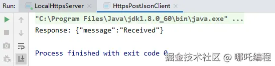 通过上述步骤,您可以生成自签名证书,并使用 Java 创建一个本地 HTTPS 服务器,接收 application/json 的 POST 请求,并通过 Java 客户端进行测试。