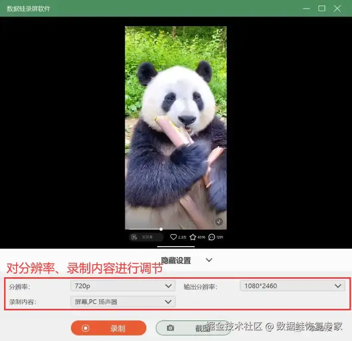 软件版本:数 据 蛙录屏软件1.1.12