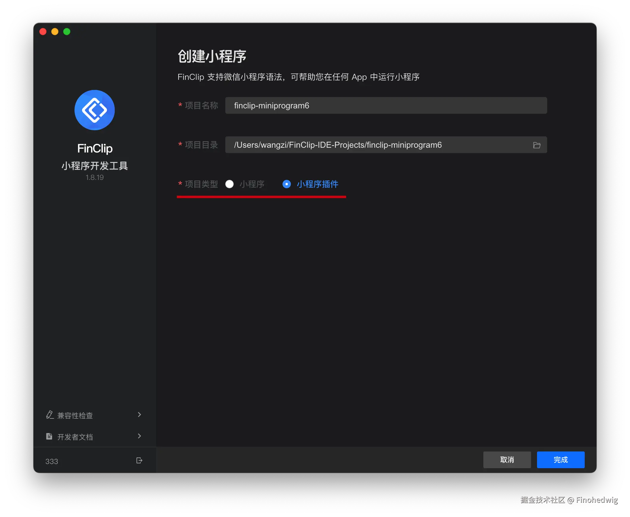 开发者需要在开发者工具中选择创建小程序,并在项目类型中选择「小程序插件」。