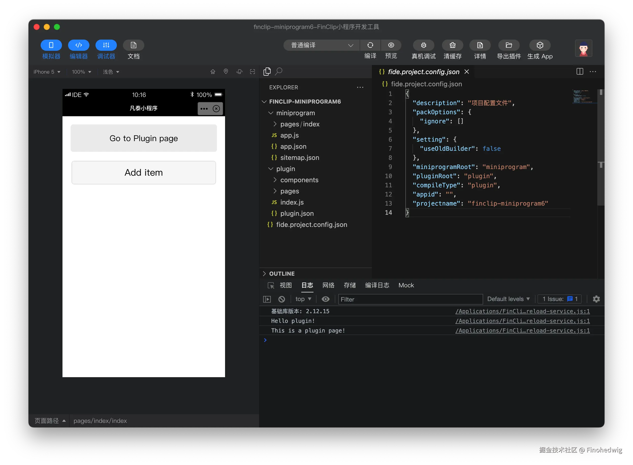 miniprogram目录:放置 FinClip 小程序,用于调试插件; -
