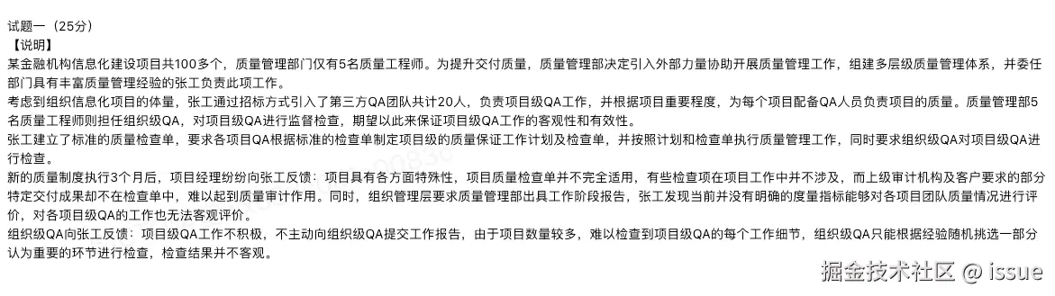 原题1:结合案例,请从质量管理和沟通管理角度,指出存在的问题
