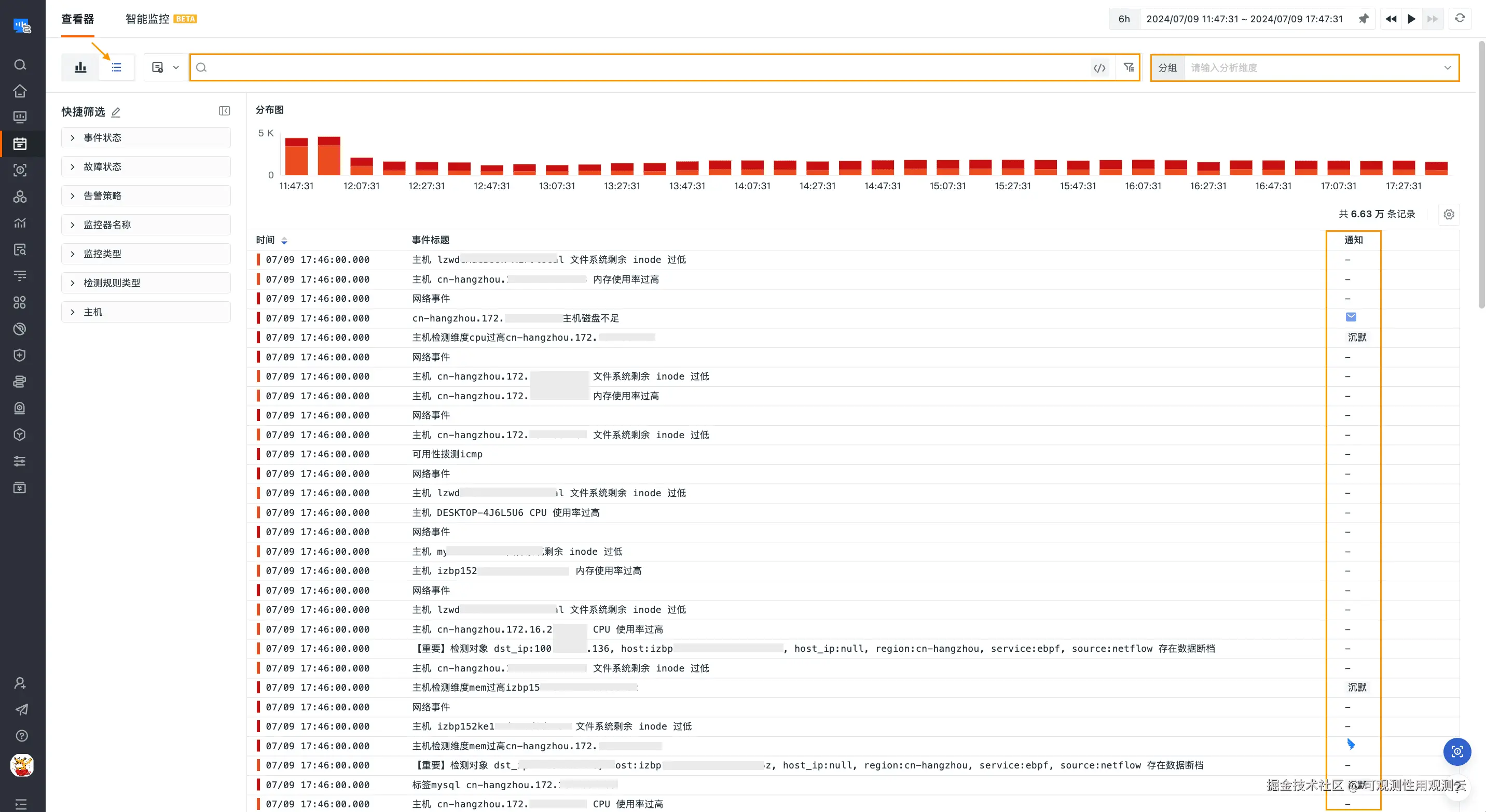 事件列表查看器:显示列新增告警通知状态标识。
