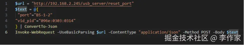 修改ip 为你的usbserver 的ip, 以及需要重置的port和对应的vid_pid,如果需要重置多个端口,就写多行,例如