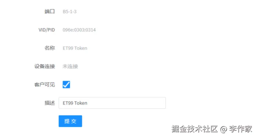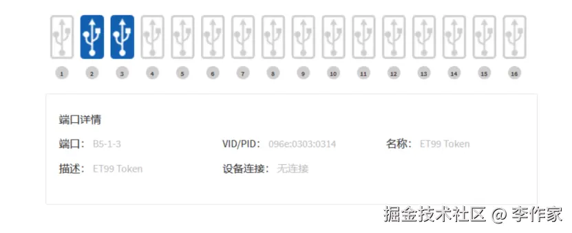 部分银行ukey 长时间不使用后会导致休眠,出现虽然有连接,但是读不到证书,可以用定时重置端口的办法,调用接口 http://ip/usb_server/reset_port,参数为