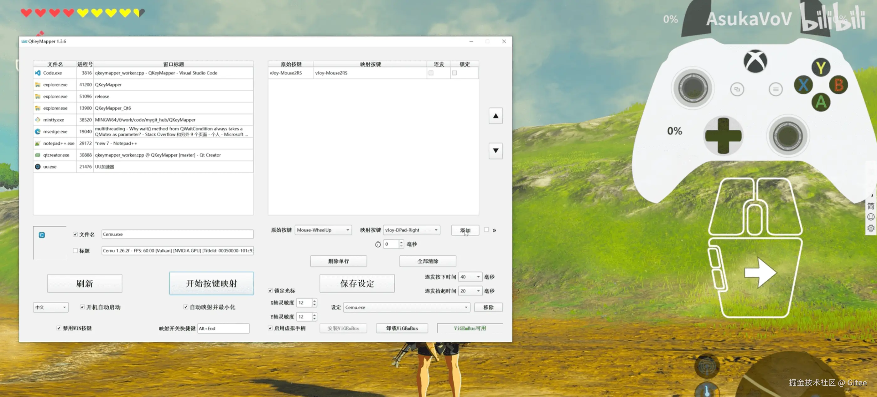 Qt 开发的按键映射工具,支持 Windows 10 & 11,不修改注册表、不需重新启动系统,可立即生效和停止,支持虚拟游戏手柄功能,可鼠标控制虚拟手柄摇杆。