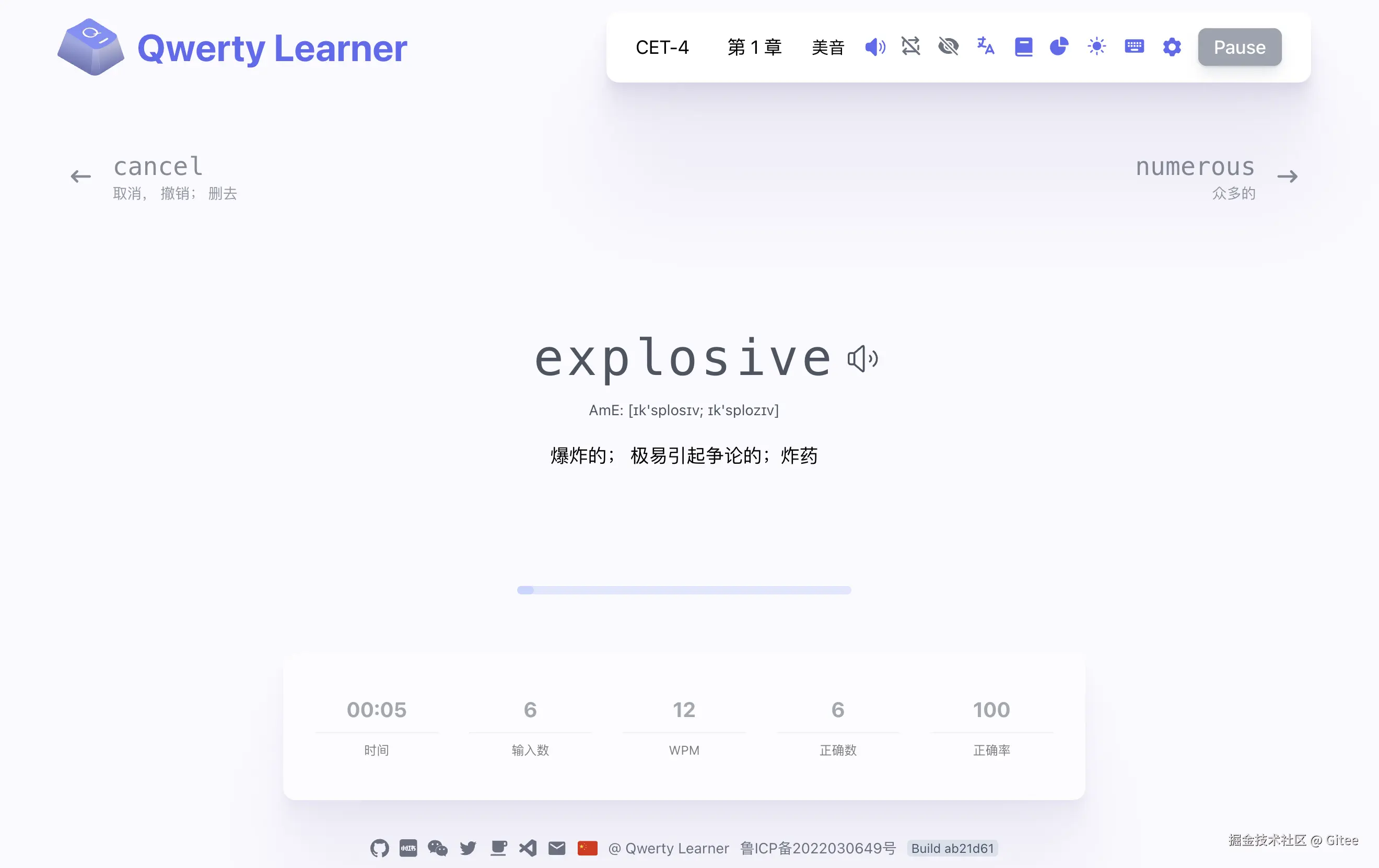 一款为键盘工作者设计的单词记忆与英语肌肉记忆锻炼软件 。内置了常用的 CET-4 、CET-6 、GMAT 、GRE 、IELTS 、SAT 、TOEFL 、考研英语、专业四级英语、专业八级英语,也有程序员常见英语单词以及多种编程语言 API 等词库,尽可能满足大部分用户对单词记忆的需求。
