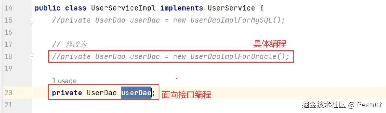 - 所以springIOC更灵活,可以在运行时添加新的对象。而工厂模式中有新的对象需要放入工厂需要改代码。