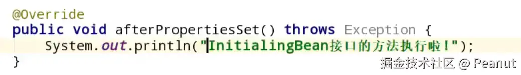 - 实现 InitializingBean接口的afterPropertiesSet方法