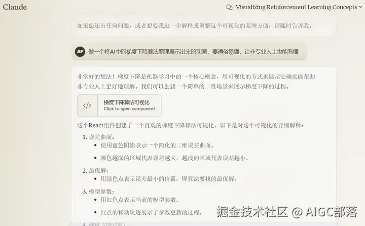 Claude Artifacts 是由 Anthropic 为其大型语言模型 Claude 引入的一项新功能,旨在改变用户与 AI 交互的方式。这项功能允许 Claude 在专用窗口中分享大量独立的内容丰富,例如代码片段、文档、网站设计等,这些内容与常规聊天响应不同,用户可以与之直接交互。这些 Artifacts 支持多种内容类型,如 Markdown、HTML、SVG、图表、React 组件和交互式图表。用户可以直接在 Artifacts 窗口中操作和修改内容,支持实时协作,跟踪变更,并允许导出或集成到 Claude 中的项目中,从而实现工作流程的无缝整合。