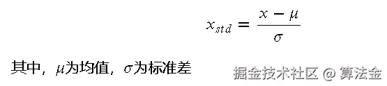 标准化(Standardization)则将数据调整为均值为0、方差为1的分布,公式为:
