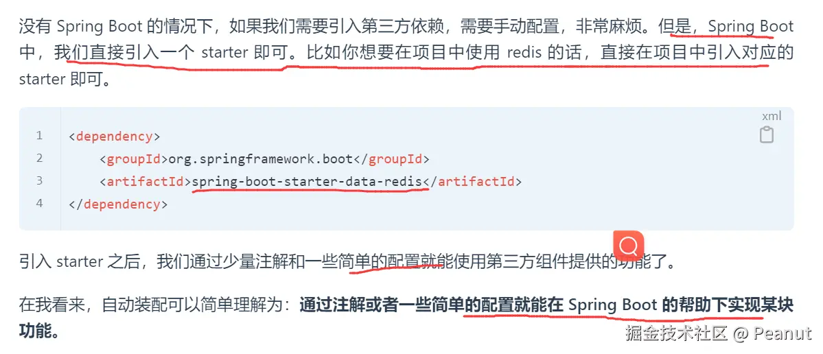 @EnableAutoConfiguration,无需写xml或者手动通过注解进行配置。引入第三方jar包即可。