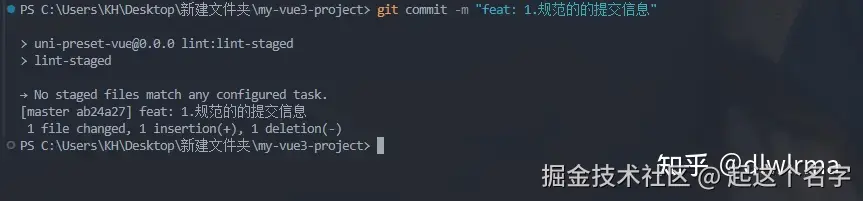 规范的 commit msg,提交成功: