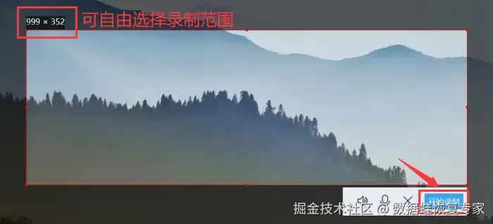 步骤3:自由框选好您需要的录制范围,点击 【开始录制】 进入录屏。
