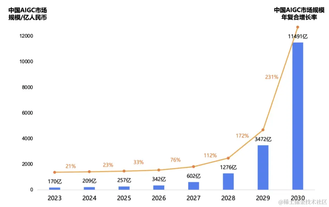 2030年,中国AIGC市场规模将达万亿级别