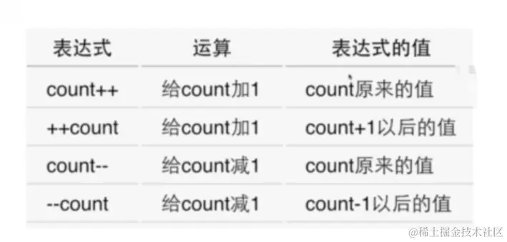 b=--count; //该表达式的值是count-1之后的值
