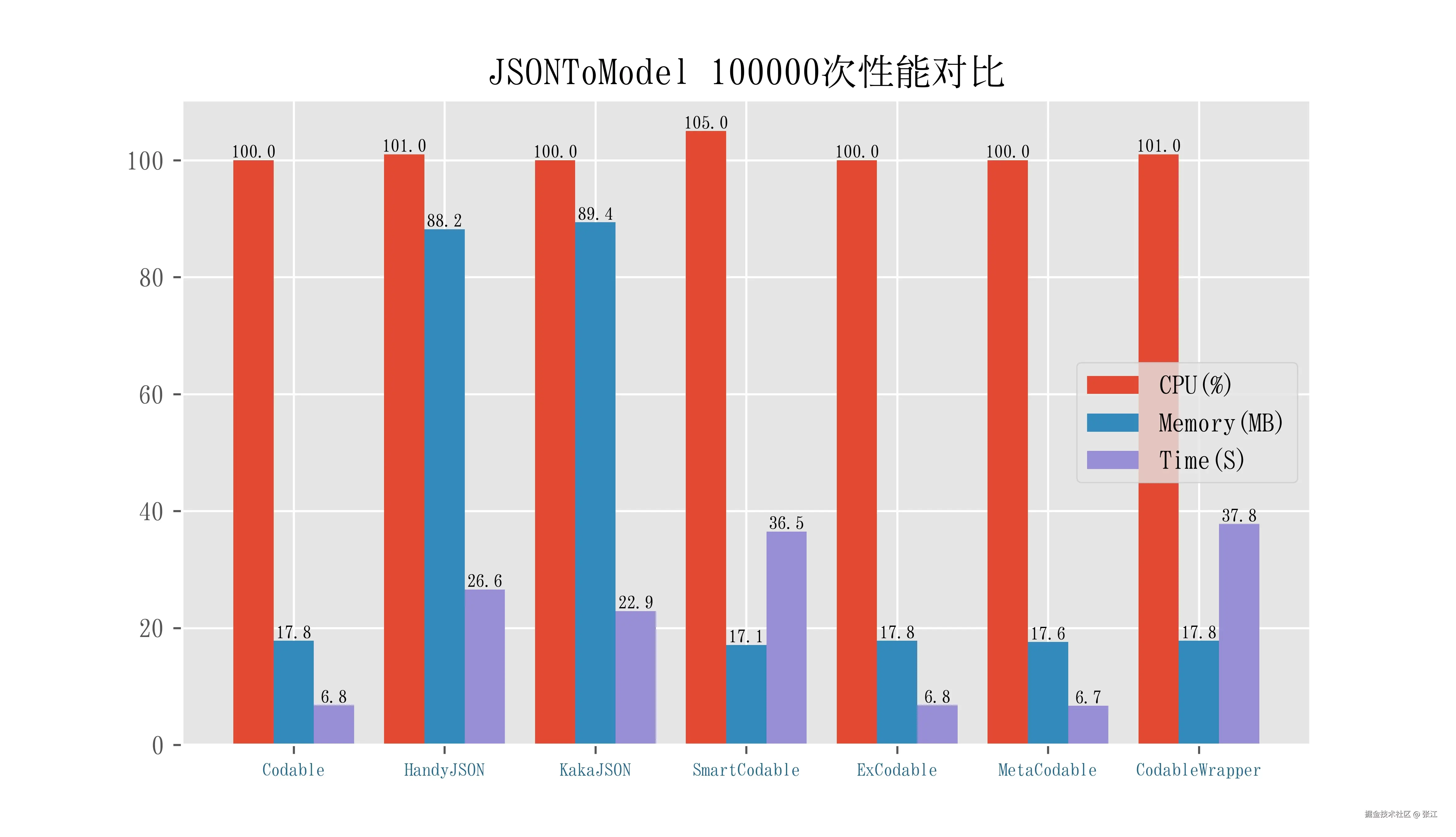 对Codable进行拓展的几个库在内存和CPU上表现一致,重点是在支持的类型和执行时间上