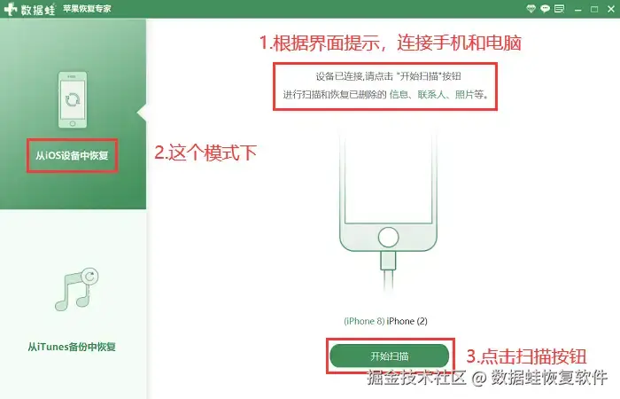 数据 蛙苹果恢复专家具有扫描速度快、质量高、恢复成功率高的特点,能够高效地找回丢失的数据。而且这款软件拥有直观的用户界面和简单的操作步骤,根据界面提示,用户能够轻松地完成数据恢复过程。
