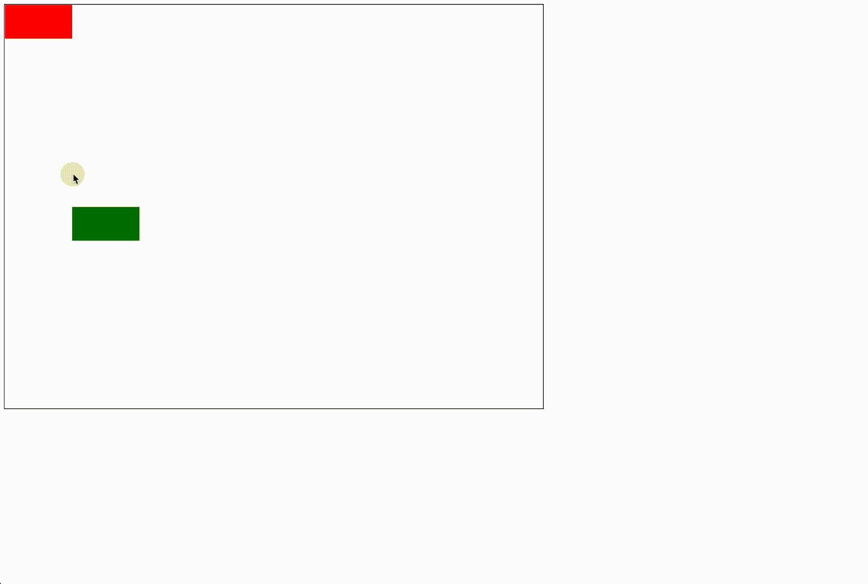 // 4. 在鼠标位置创建一个红色的方块,此时需采用相对于视口的位置