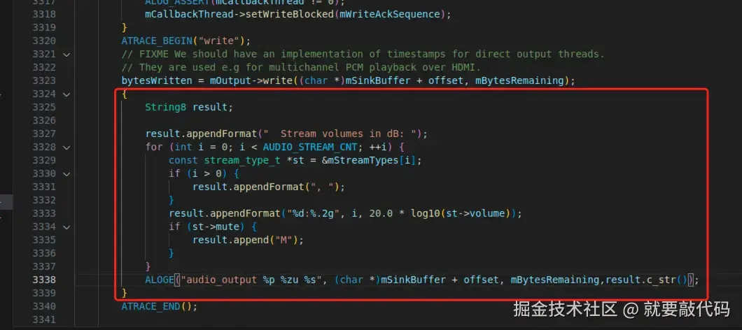 基于源码修改AudioFlinger内容,比如我这里在Threads.cpp里增加了一些日志打印