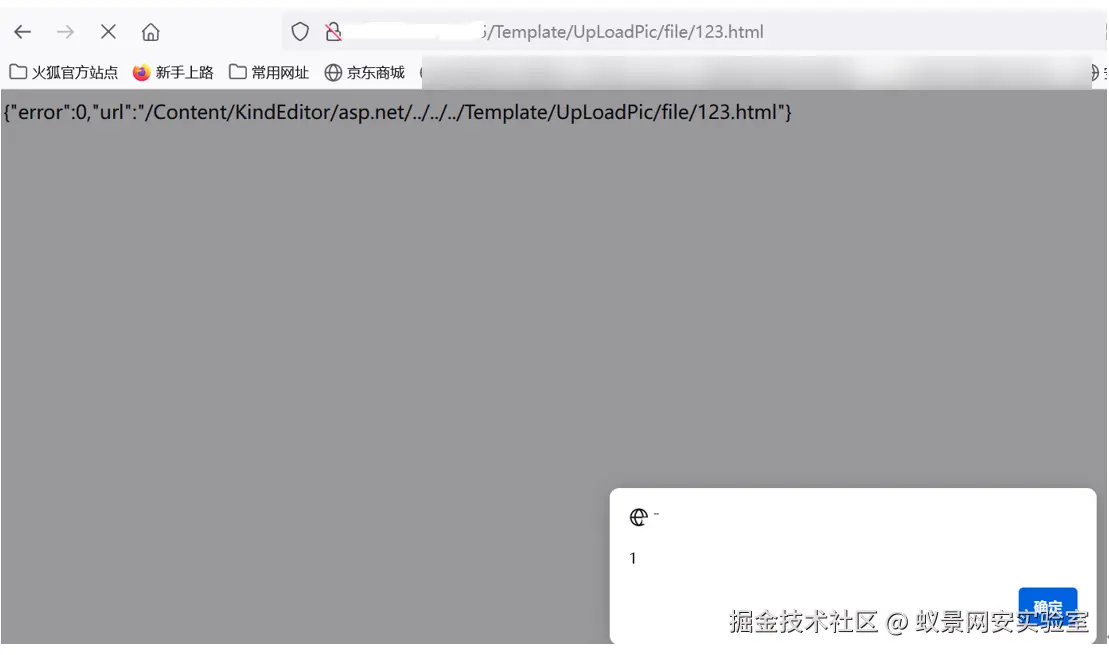 看到这个页面,根据我的经验估计稳了。于是按照步骤部署html上传页面,再将自己写另一个的xss的html通过自己的html页面进行上传,抓包得到返回路径,拼接后访问,成功弹窗,此漏洞可在未登录状态完成。(另一个目录遍历漏洞未能成功)