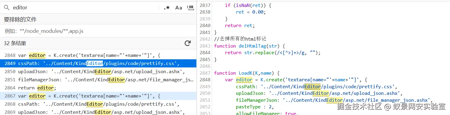 在数据包中发现Editor字段,加上此处存在试卷编辑功能点,于是猜测可能使用了编辑器,在js文件中搜索关键字: