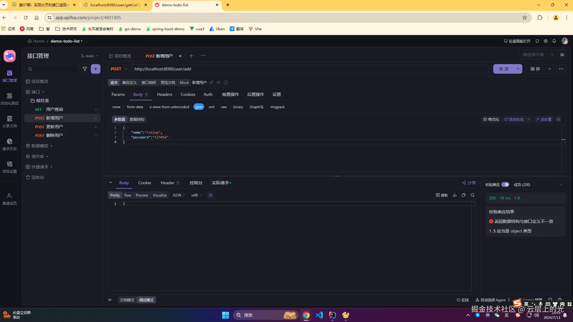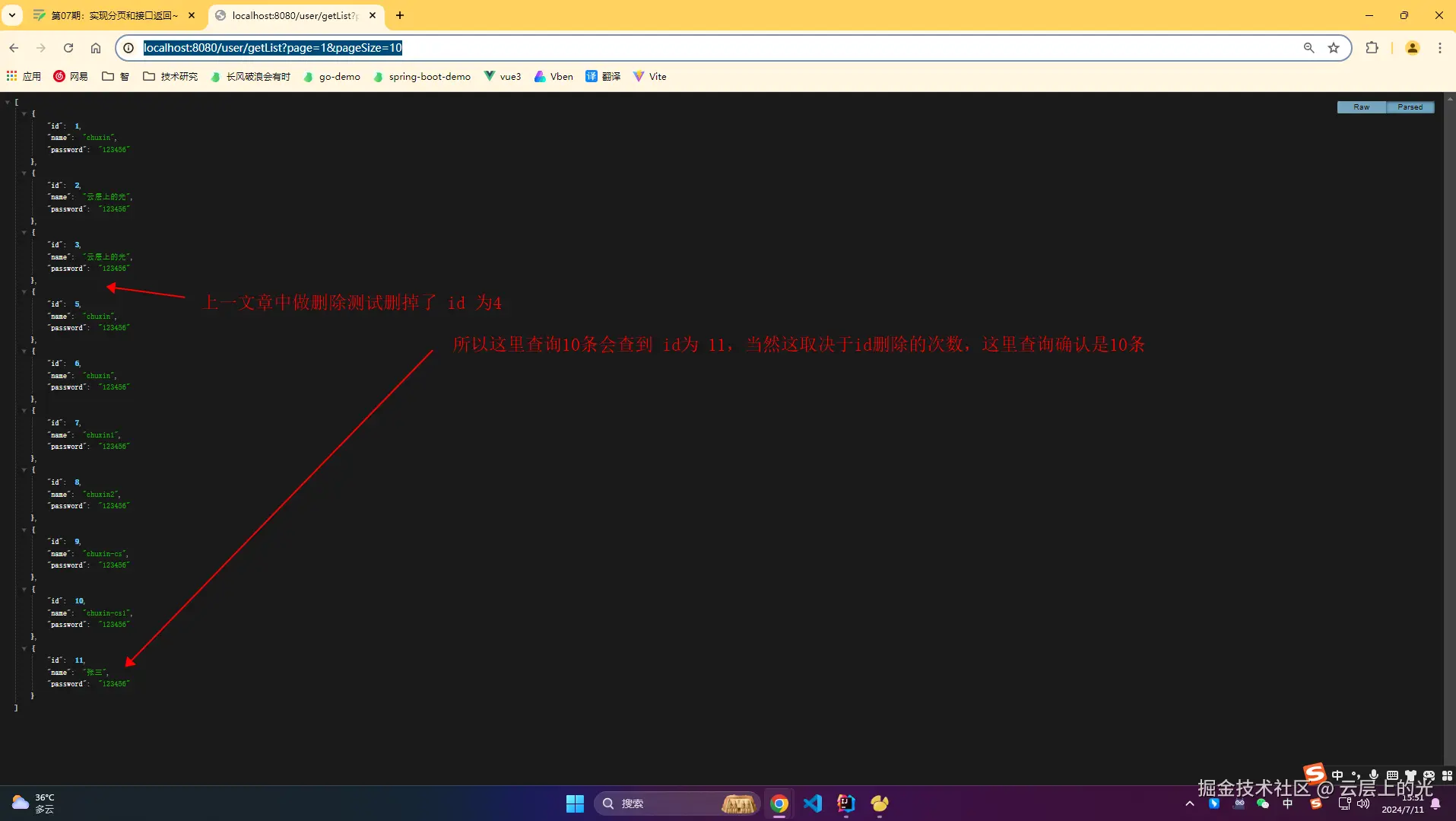 11、浏览器访问:http://localhost:8080/user/getList?page=1&pageSize=10