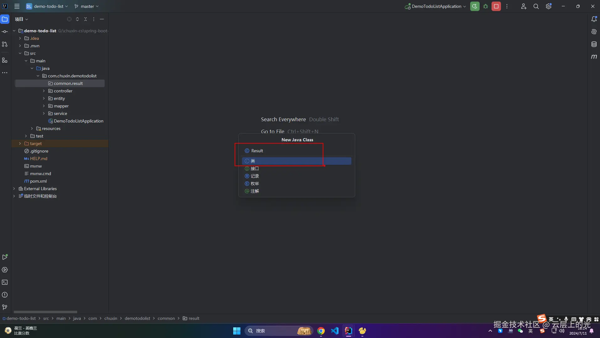 3、common/result 软件包下新建 Result 类文件