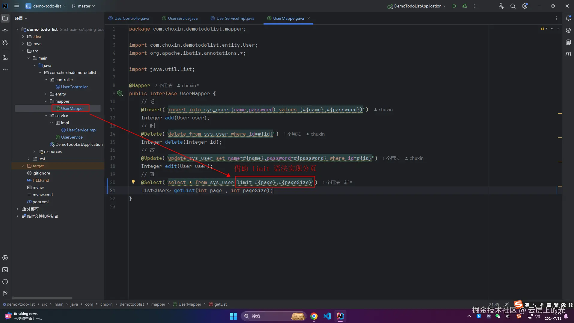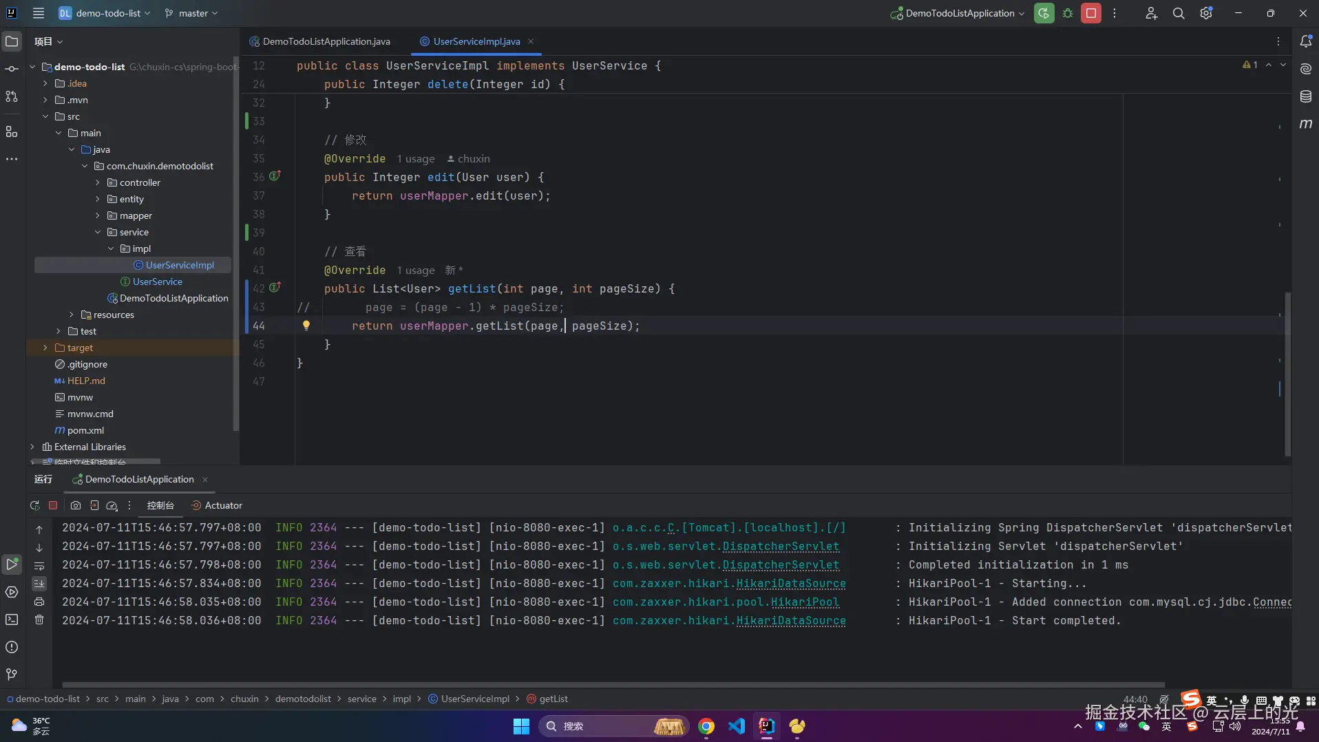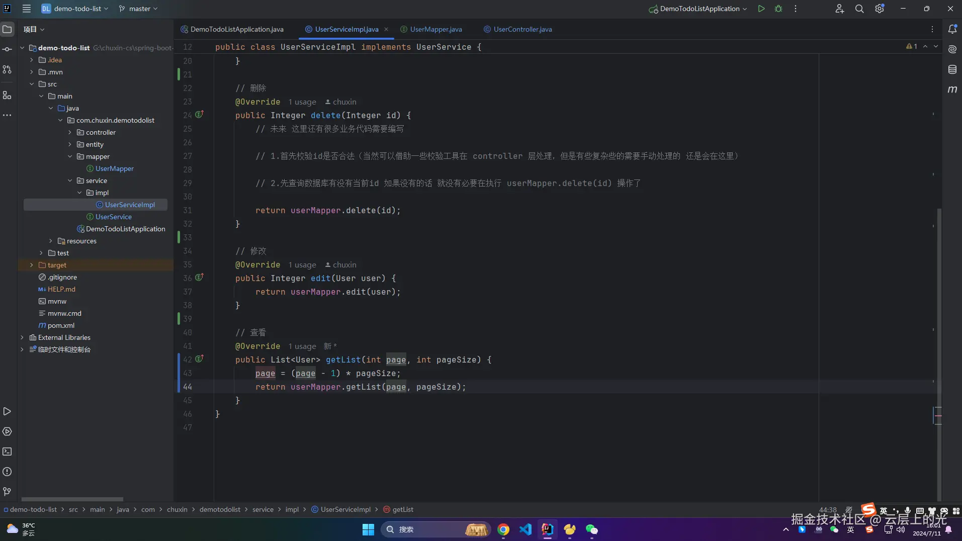 10、再次改造 service/impl 软件包下的 UserServiceImpl 类文件