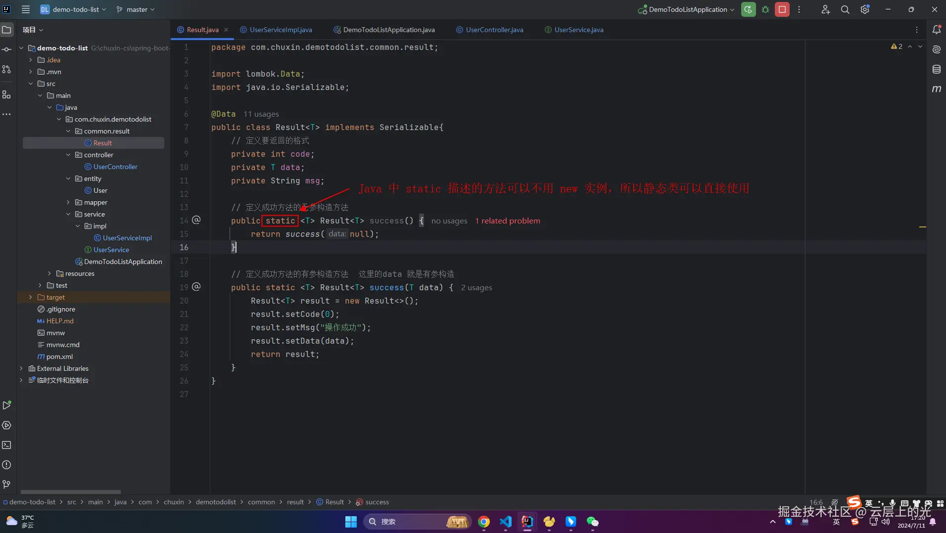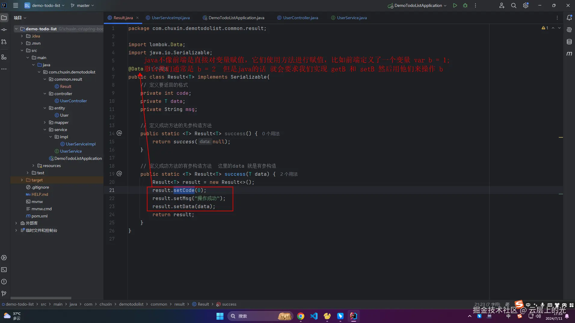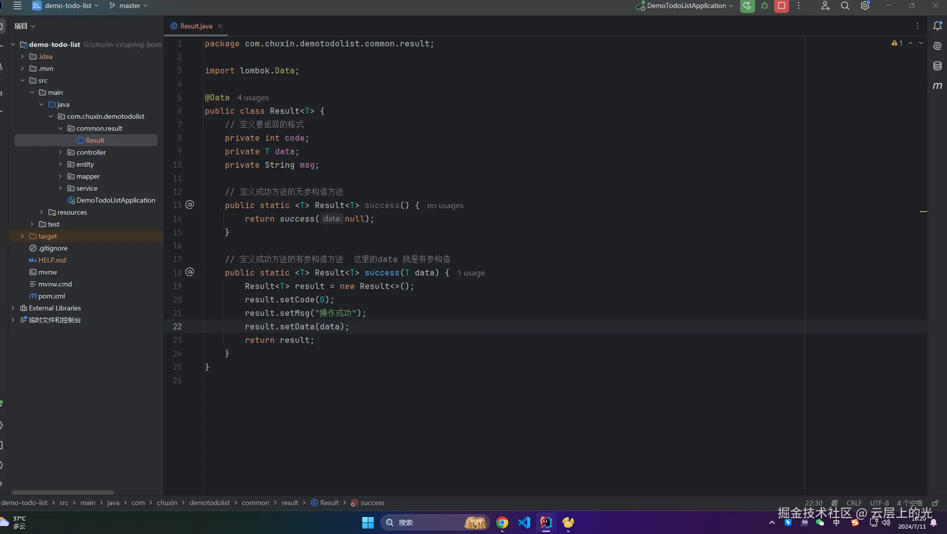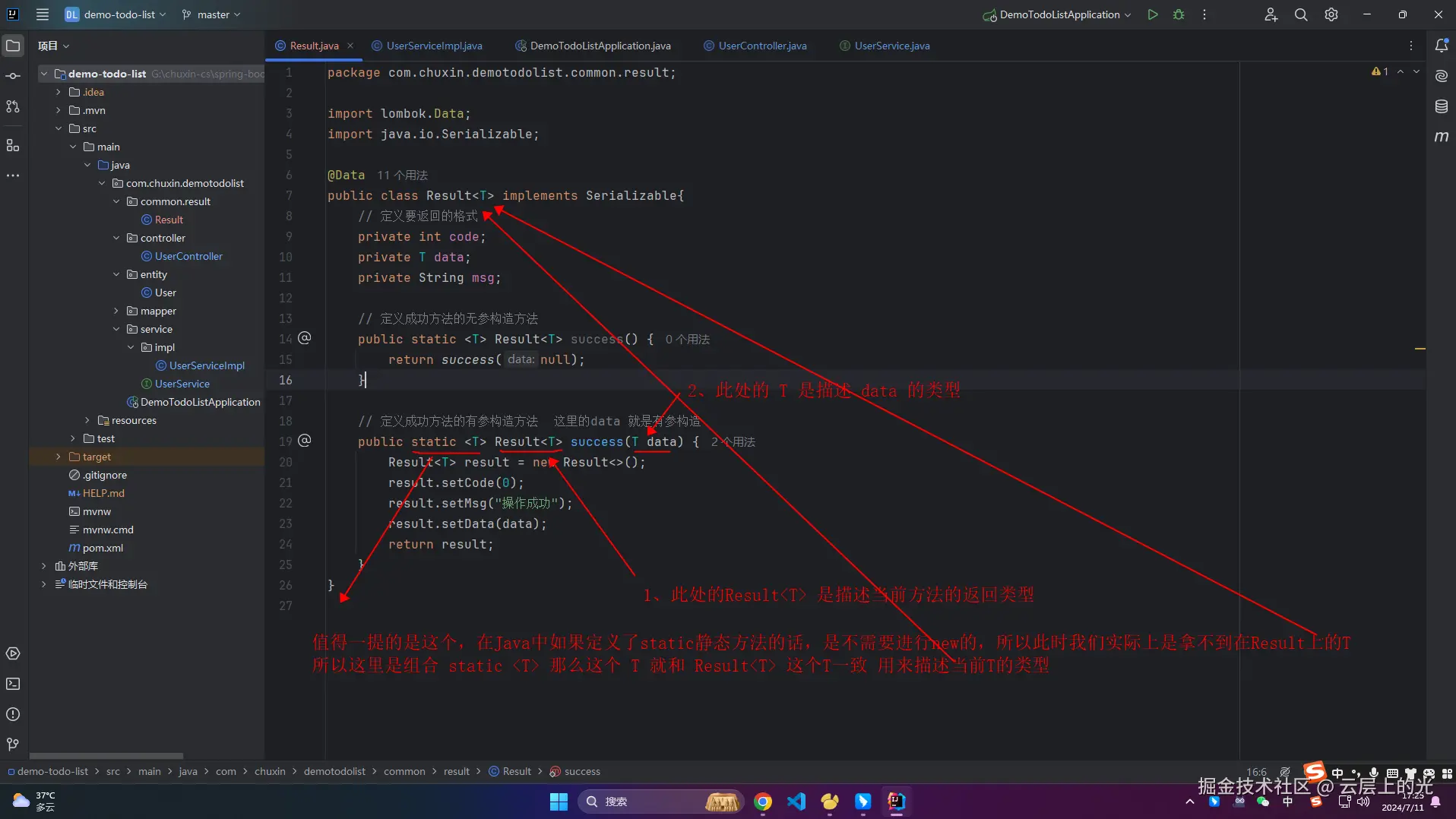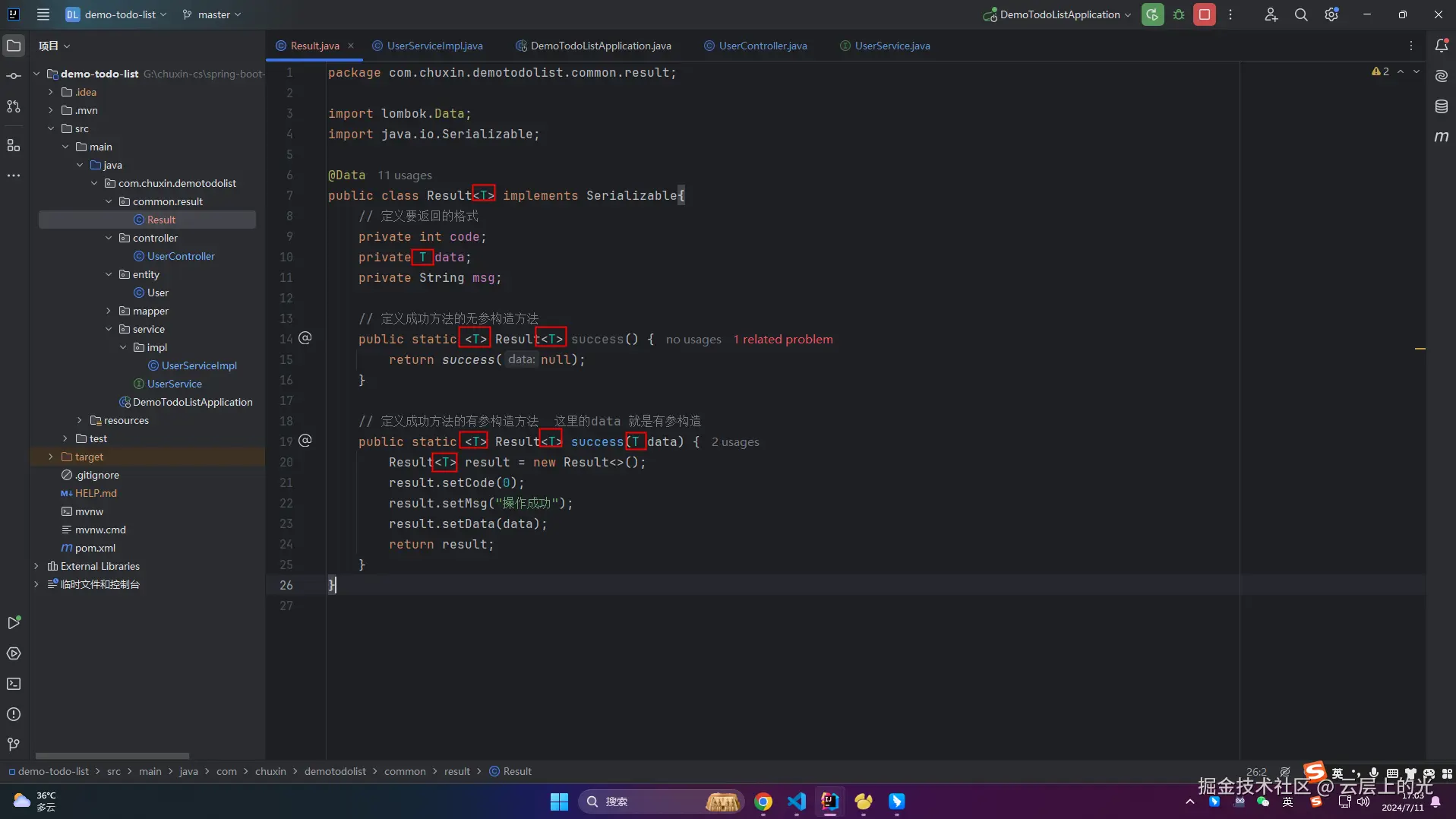 1、Result 中出现了很多次 T ,慢慢开始接触 Java 的泛型了