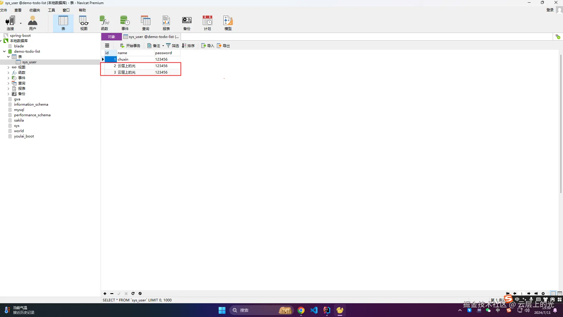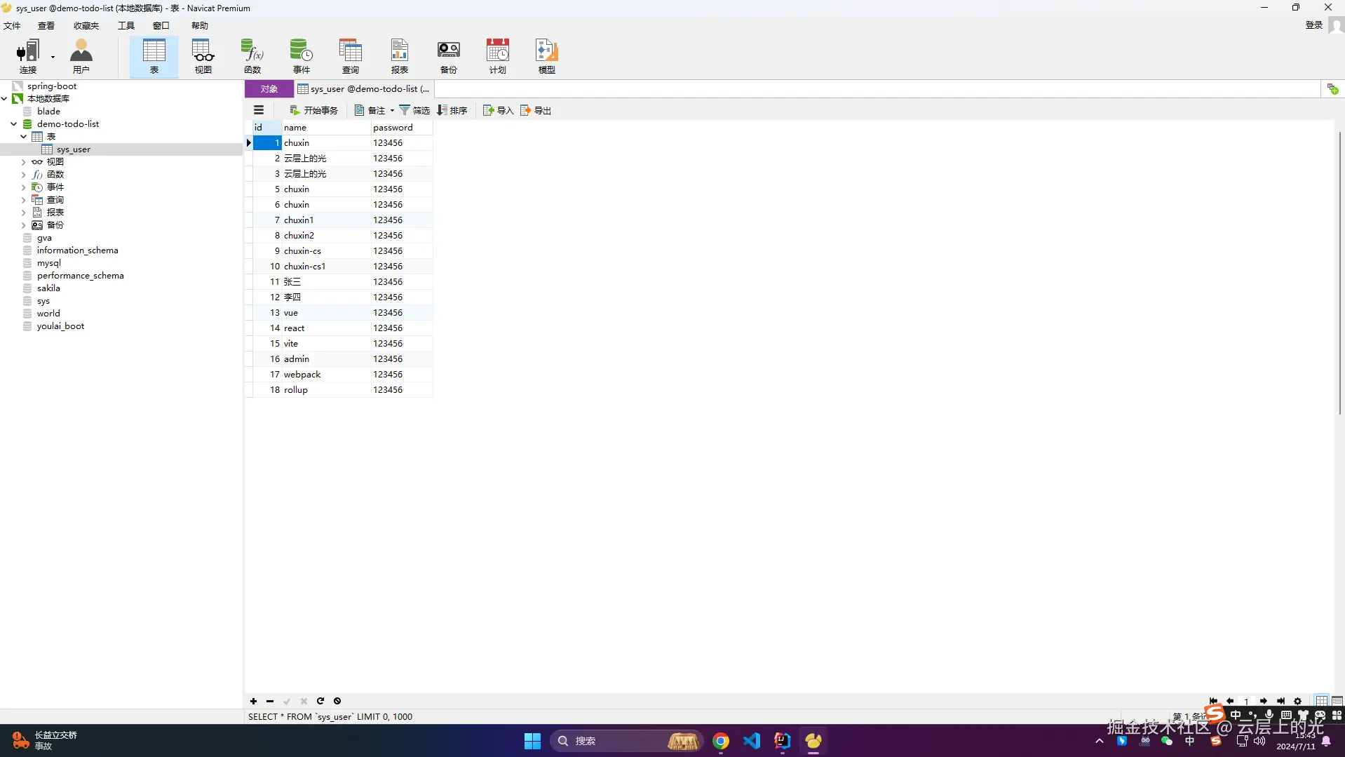 8、为了方便测试分页,此时我重复调用了多次 新增接口
