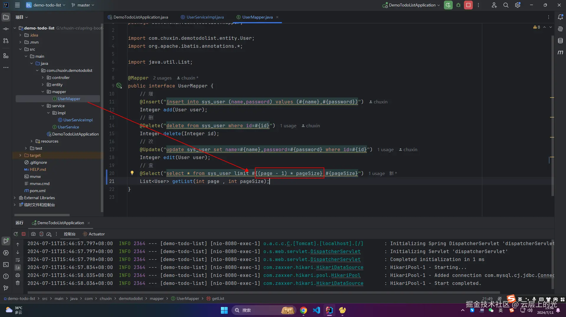List<User> list = userMapper.getList(page, pageSize);