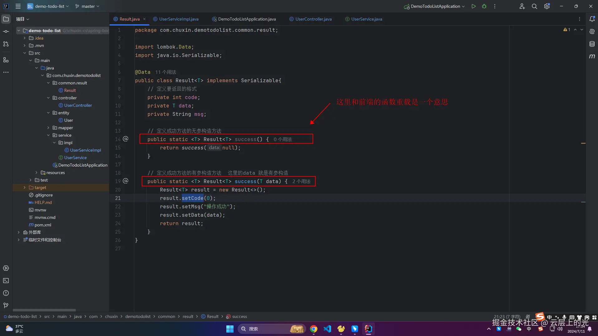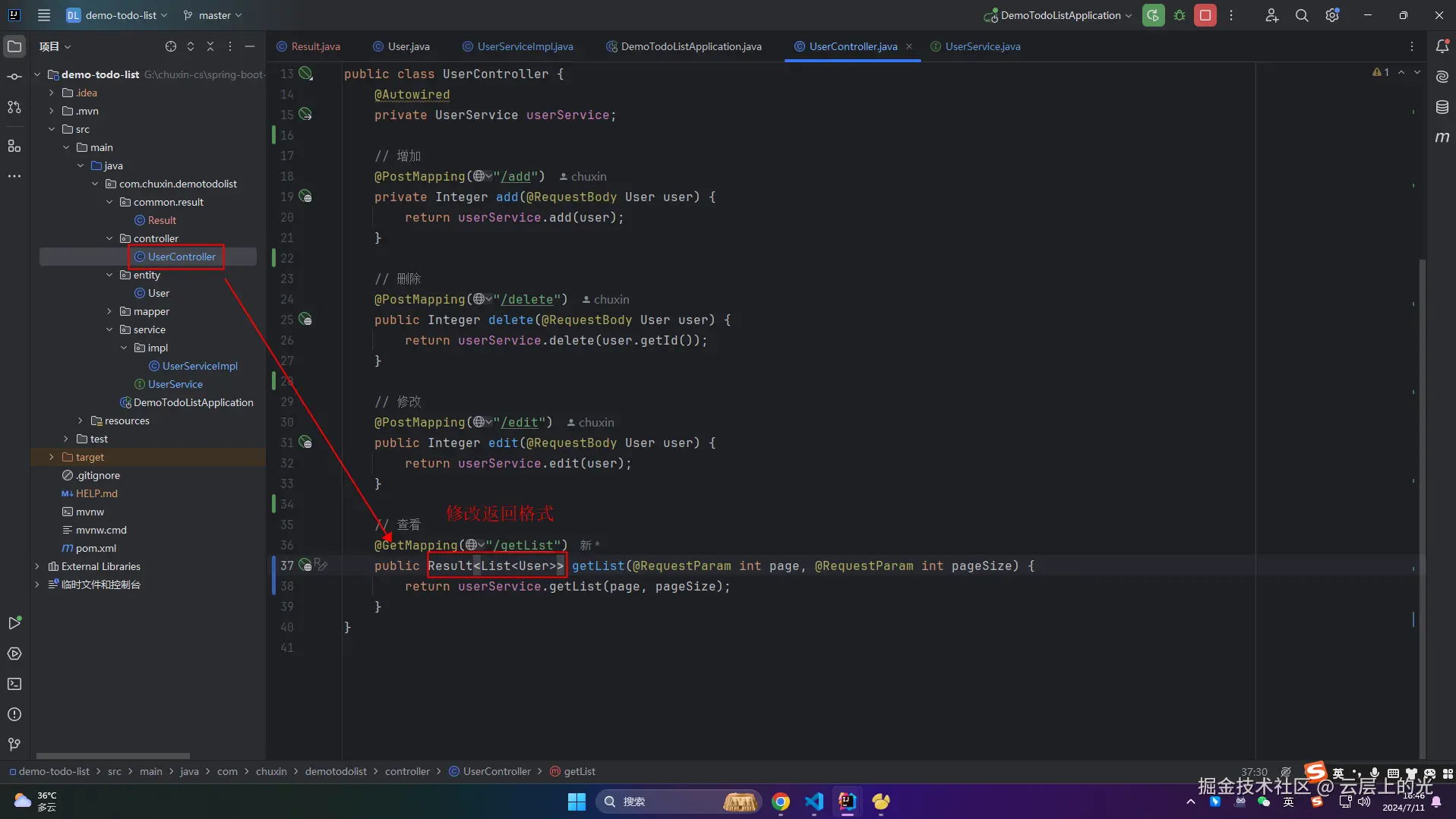 7、改造 controller 中 UserController 类文件,修改新的返回格式
