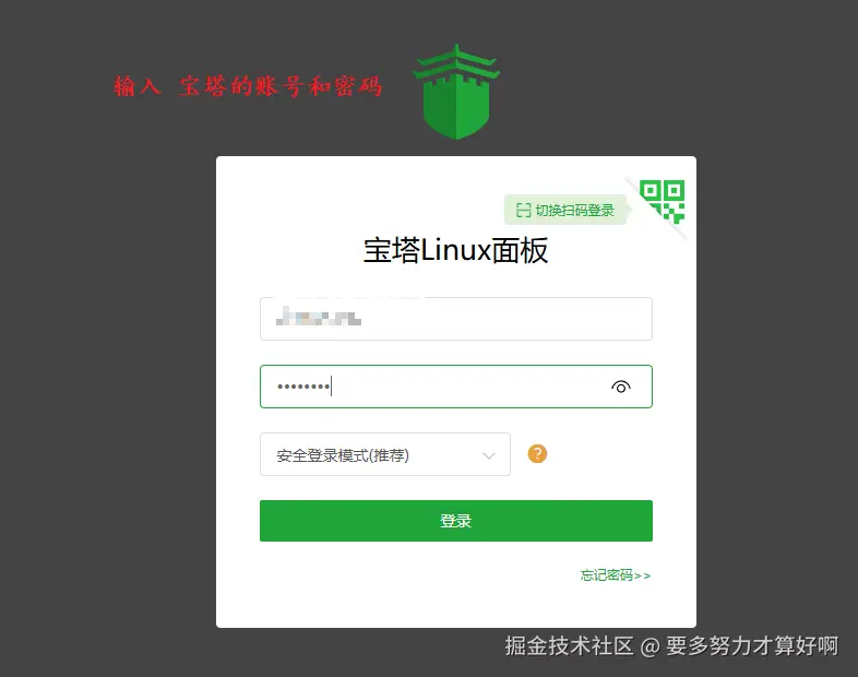 - 在上一步安装宝塔并成功输出外网面板地址后,我们复制外网地址,新建浏览器进行登录