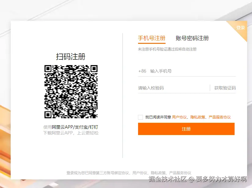- 如果你还没有阿里云账号,先注册一个账号并完成实名认证。你可以使用淘宝账号登录激活阿里云账号。