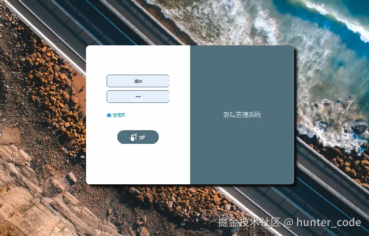登录,管理员通过输入用户名,密码,选择角色信息,点击登录进入系统进行操作,如图5-5所示。