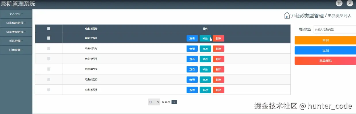 电影类型管理,在电影类型管理页面可以电影类型进行查看,修改或删除等操作,如图5-8所示。