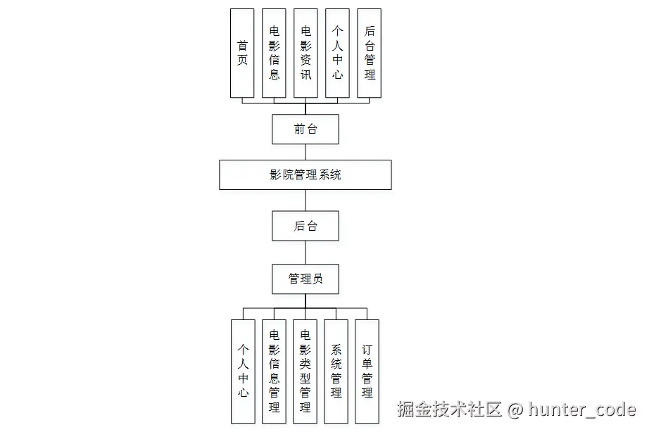 为了更好的去理清本系统整体思路,对该系统以结构图的形式表达出来,设计实现该影院系统的功能结构图如下所示: