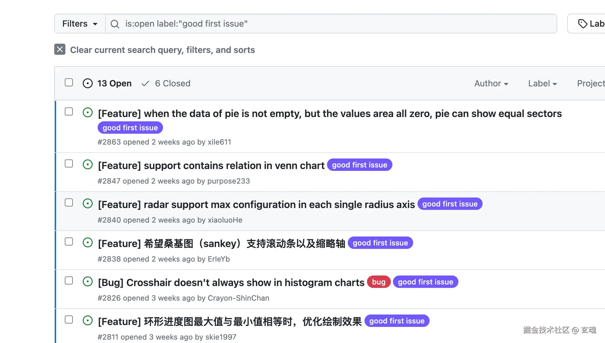 为此,VisActor团队在每个季度会挑选一些issue,希望有志参与社区建设的同学来参与,同时我们也会提供一些小礼物作为鼓励。