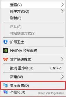 第一步:右键点击桌面空白处,选择 “显示设置” 。