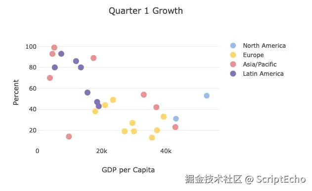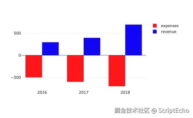 scattermode: 'group':将数据点分组显示。title: 图表标题。xaxis: x 轴标签。yaxis: y 轴标签。barcornerradius: 条形圆角半径。