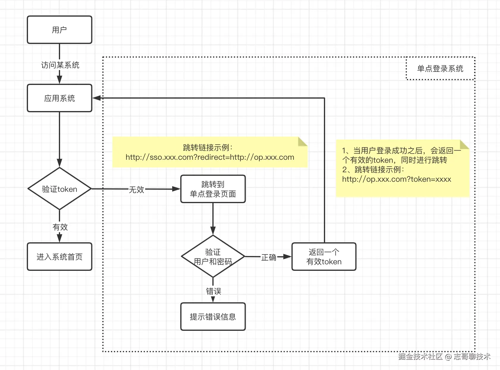 这个流程图,就是单点登录系统与应用系统之间的交互图。