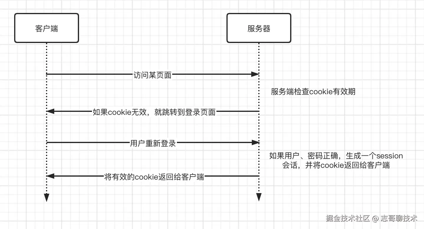 当用户访问其他后端的服务时,我们只需要检查一下当前用户的session是否有效,如果无效,就再次跳转到登录页面;如果有效,就进入业务处理流程。
