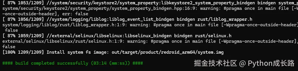 我这个之前编译过有缓存,所以几分钟就编译完了,正常来说像i712700h这个CPU编译也得两小时。