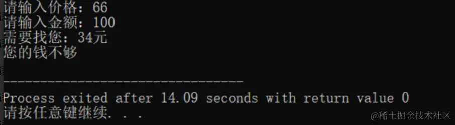 这样输肯定不对,因为这种情况不管钱够不够都会输出 您的钱不够