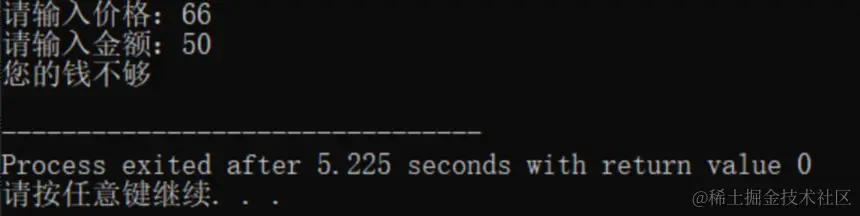 printf("您的钱不够\n");